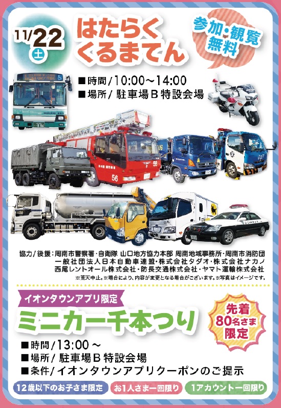 イオンタウン周南久米にて開催されました『はたらくくるまてん』に、